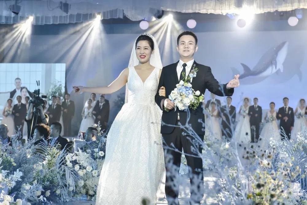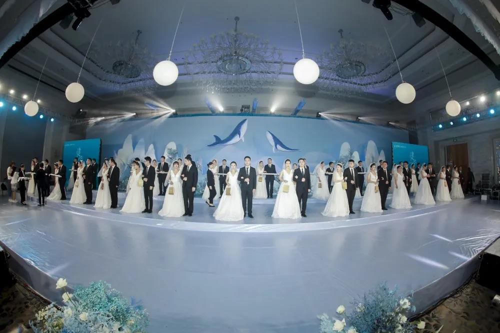 夢境中走出的“海的女兒”拉開夢幻婚禮的序幕,30對新人在“海洋精靈”的引領下依次入場,臉上洋溢著無比幸福的笑容,以默契合拍的舞蹈展示,成為全場焦點。