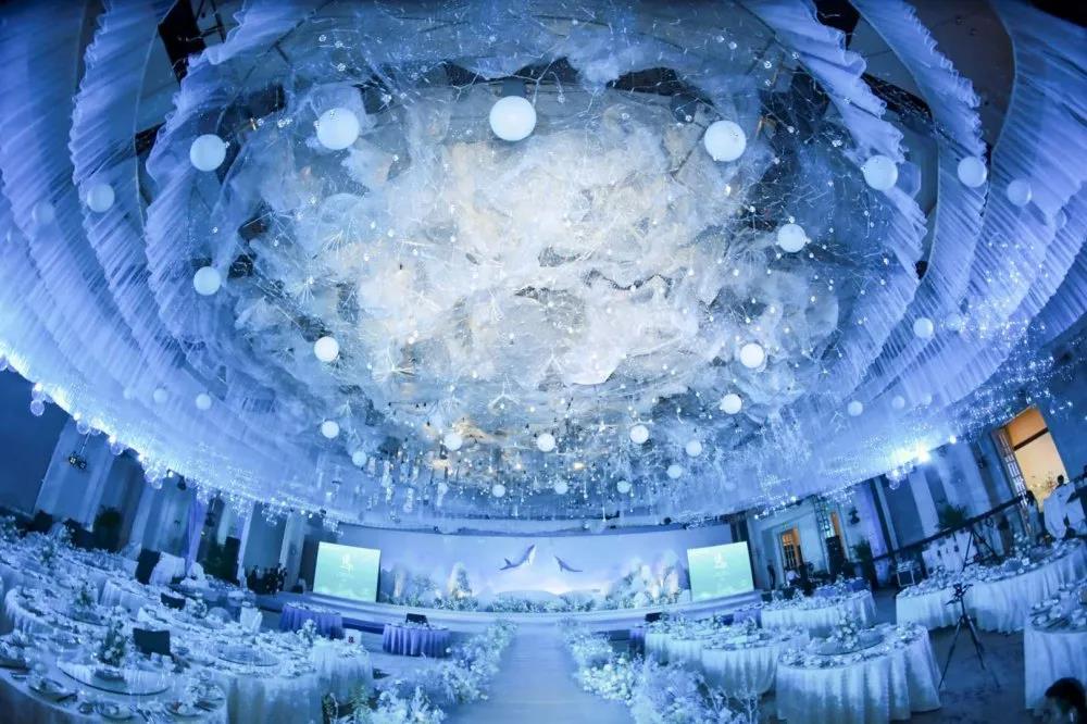 與白天溫馨浪漫的求婚儀式不同,晚上的主婚禮儀式則更加唯美、隆重。
