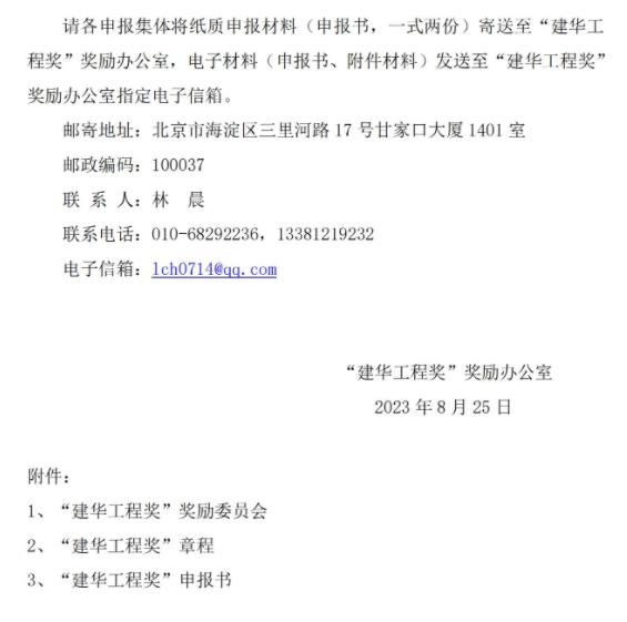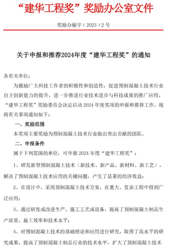 關于申報和推薦2024年度“建華工程獎”的通知